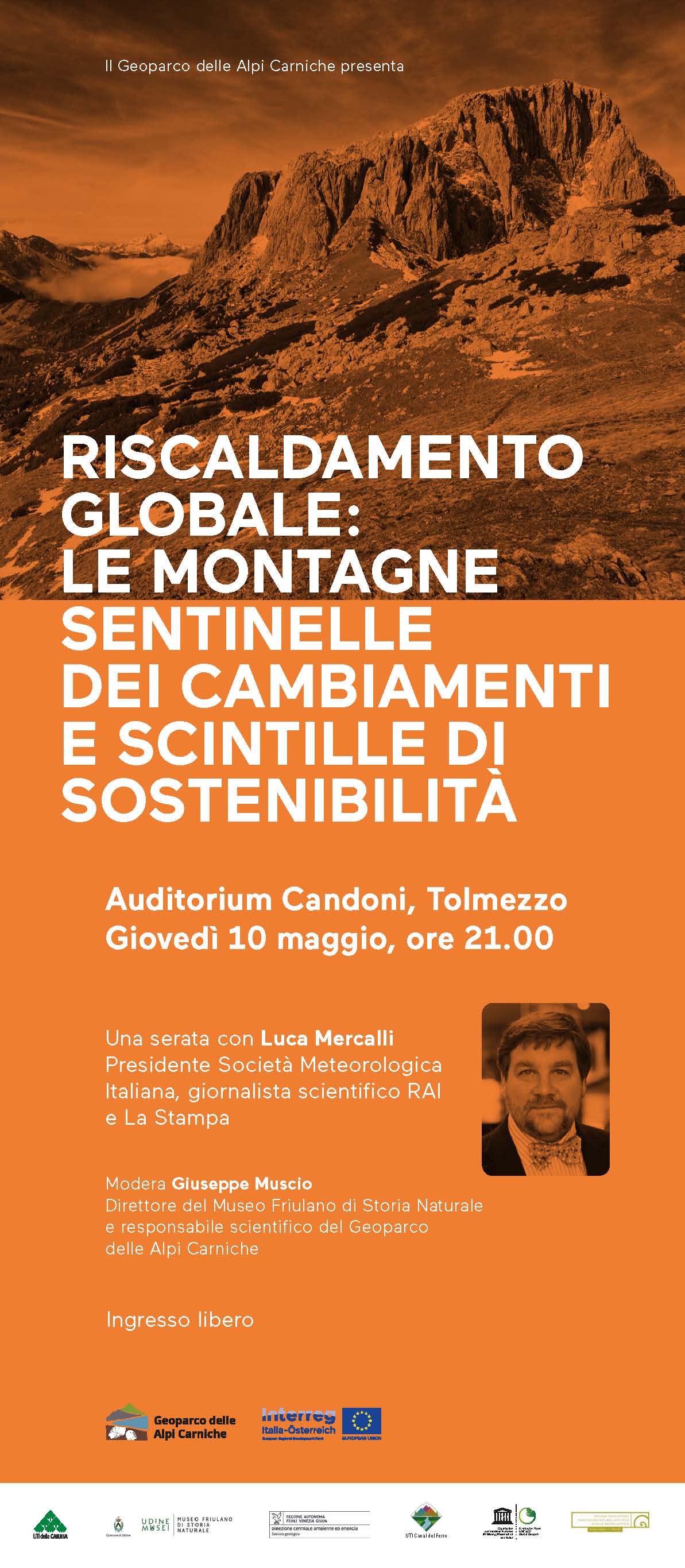 Der illustre Klimaforscher und Fachmann der Bergwissenschaften, Luca Mercalli, bekannt durch seine zahlreichen Fernsehprogramme, begegnet das Publikum in Tolmezzo für einen Vortrag über die Klimaveränderungen, insbesondere die Veränderungen die direkt im alpinen Raum festzustellen sind: vom Rückzug der Gletscher bis zur hydrogeologischen Instabilität.