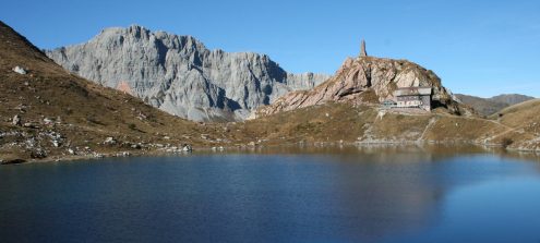 The Wolayer Pass is the saddle that separates the imposing limestone cliffs of Mount Capolago/Seekopf to the west from those of Cima Lastrons del Lago/Seewarte und Coglians/Hohe Warte to the east. It owes its origins to an important tectonic line north-south, a fault that cuts the cliff deposits, remains of the oldest marine environments. A fault is a fracture within a rocky body, which testifies to the movements of the block in which the body was divided. This fault is characterised by a rather important vertical movement, but also by a relative horizontal displacement which is estimated in about half a kilometre (546 yards).