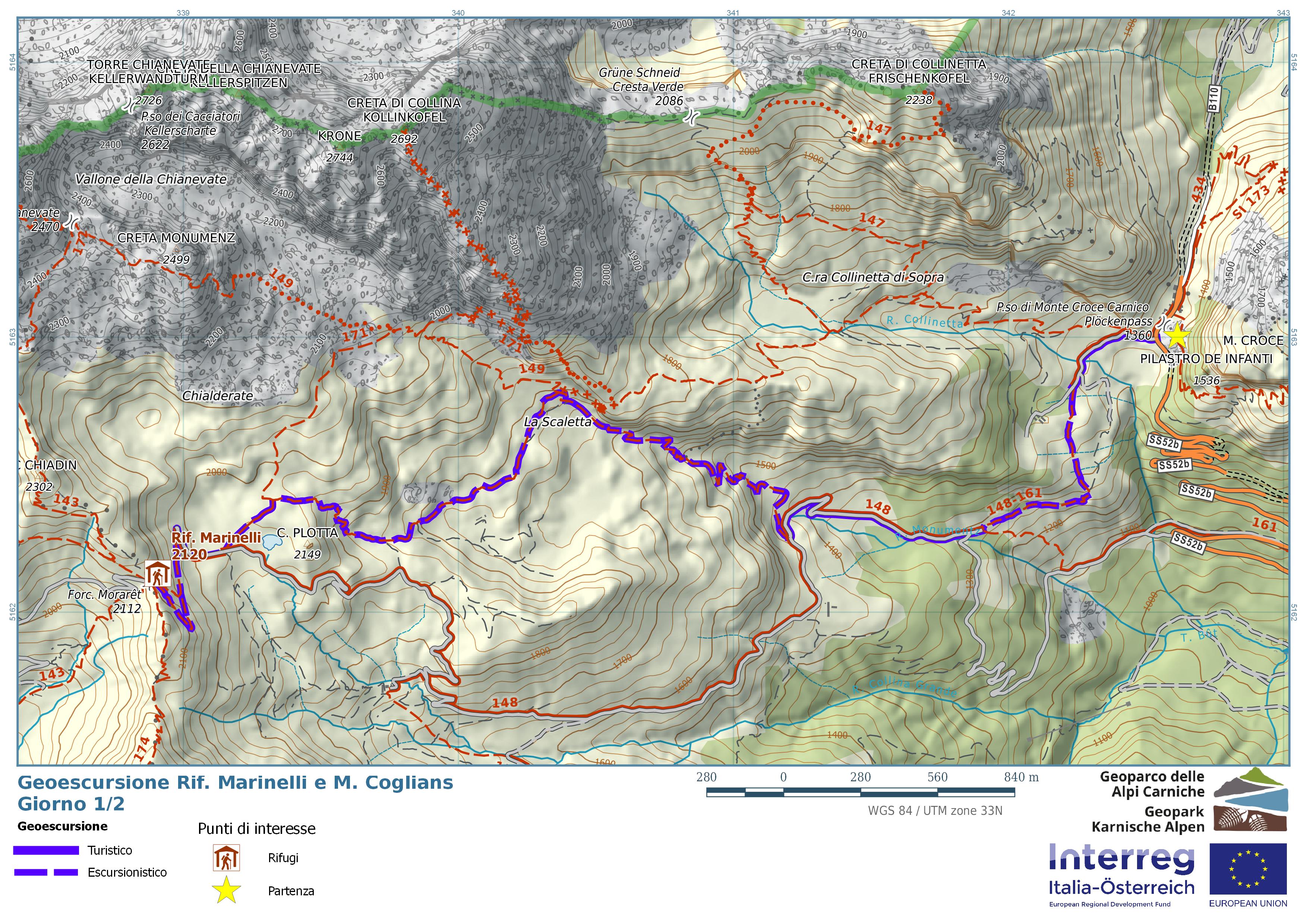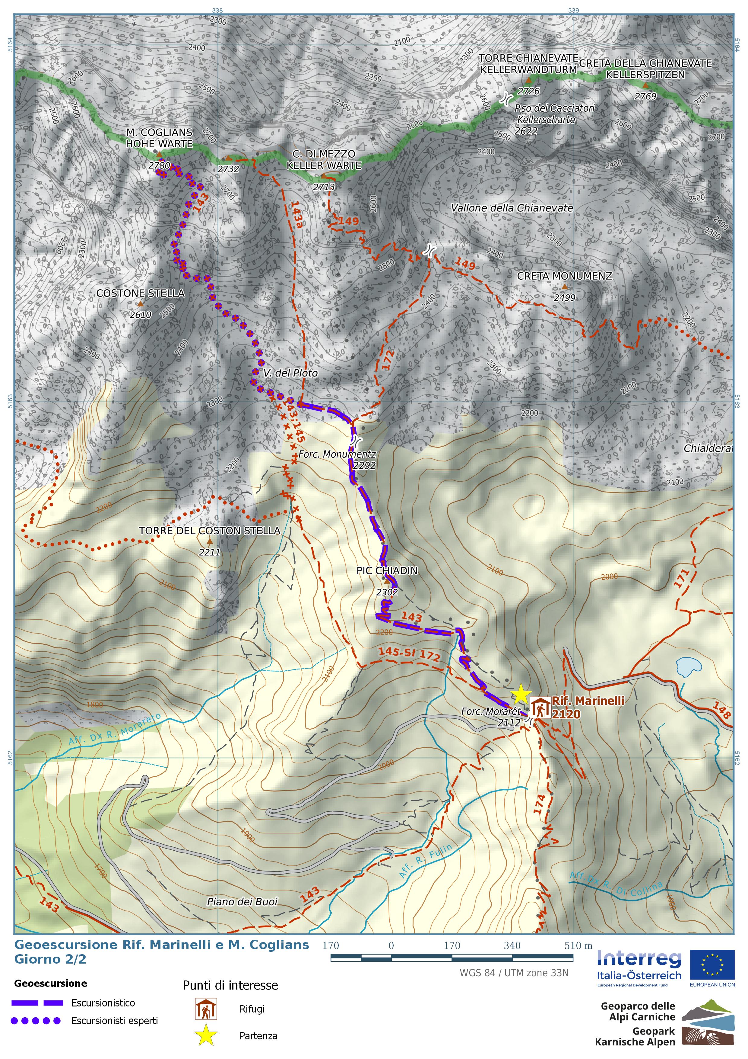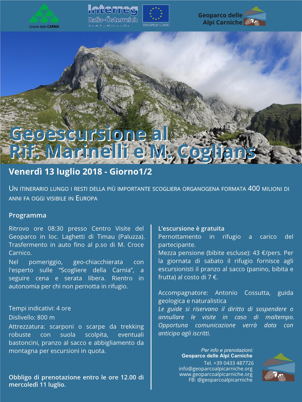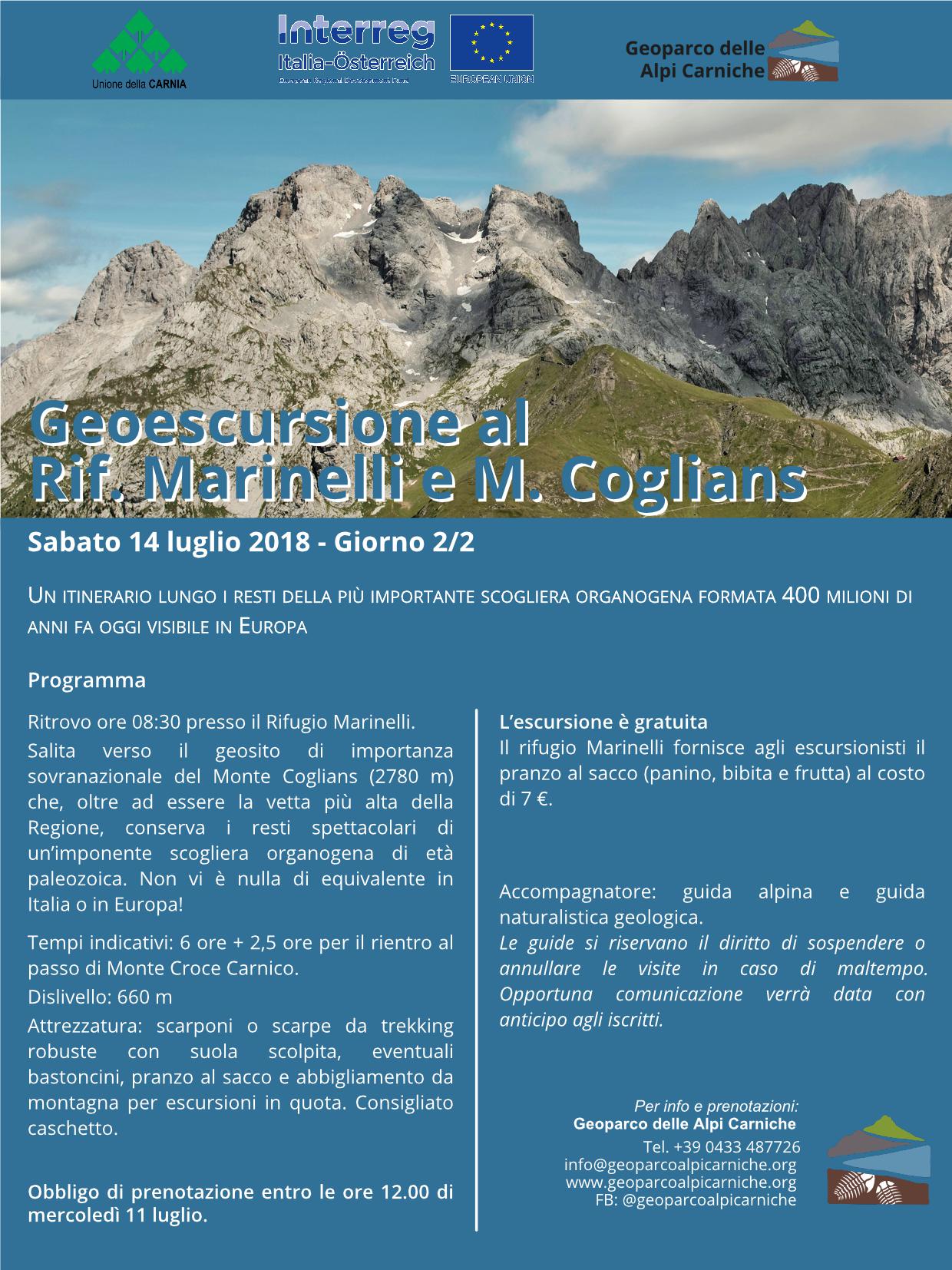 Il Geoparco Transfrontaliero delle Alpi Carniche propone un viaggio nel tempo geologico sulla vetta più alta del Friuli Venezia Giulia, il M.te Cogliàns (2.780 m). Cammineremo infatti lungo i resti della più importante scogliera organogena formatasi nel Devoniano (400 milioni di anni fa) oggi visibile in Europa; lungo il percorso sarà inoltre possibile osservare da vicino l’azione modellatrice di antichi ghiacciai, nonché i fantasiosi segni che il fenomeno del carsismo esercita sulle rocce carbonatiche.